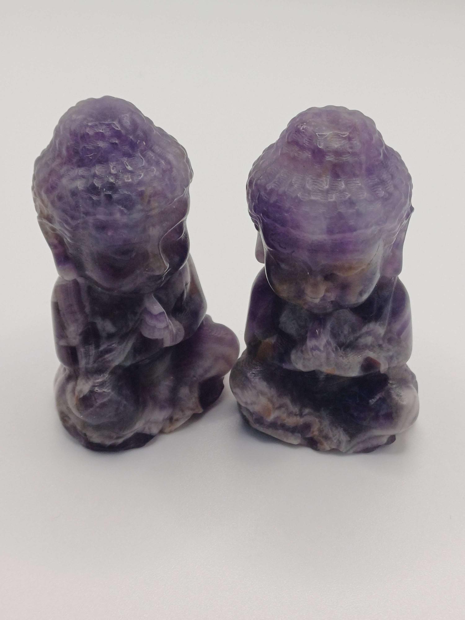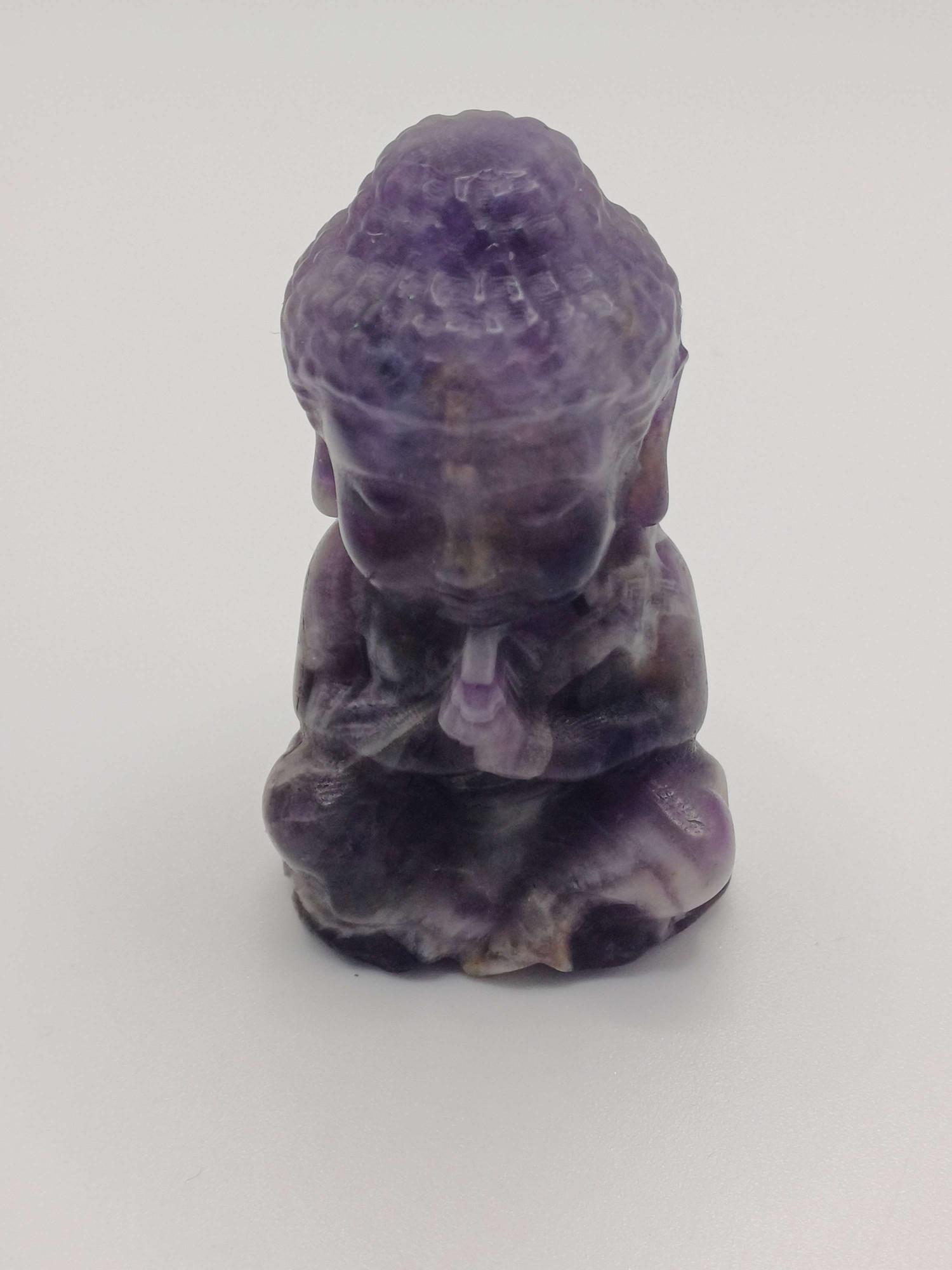 This little amethyst Buddha is one of those pieces that instantly changes the feel of a room. It’s carved from real amethyst, polished until it’s smooth and cool to the touch, and full of those soft, natural shades of purple that amethyst is famous for. Each one is a little different – some slightly darker, some lighter – but all have that same quiet presence that makes you want to stop for a second and breathe.