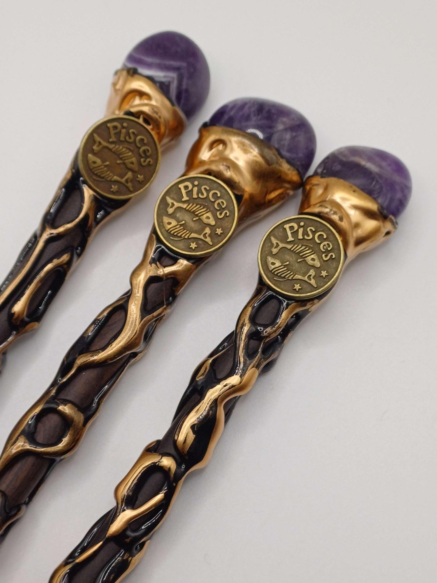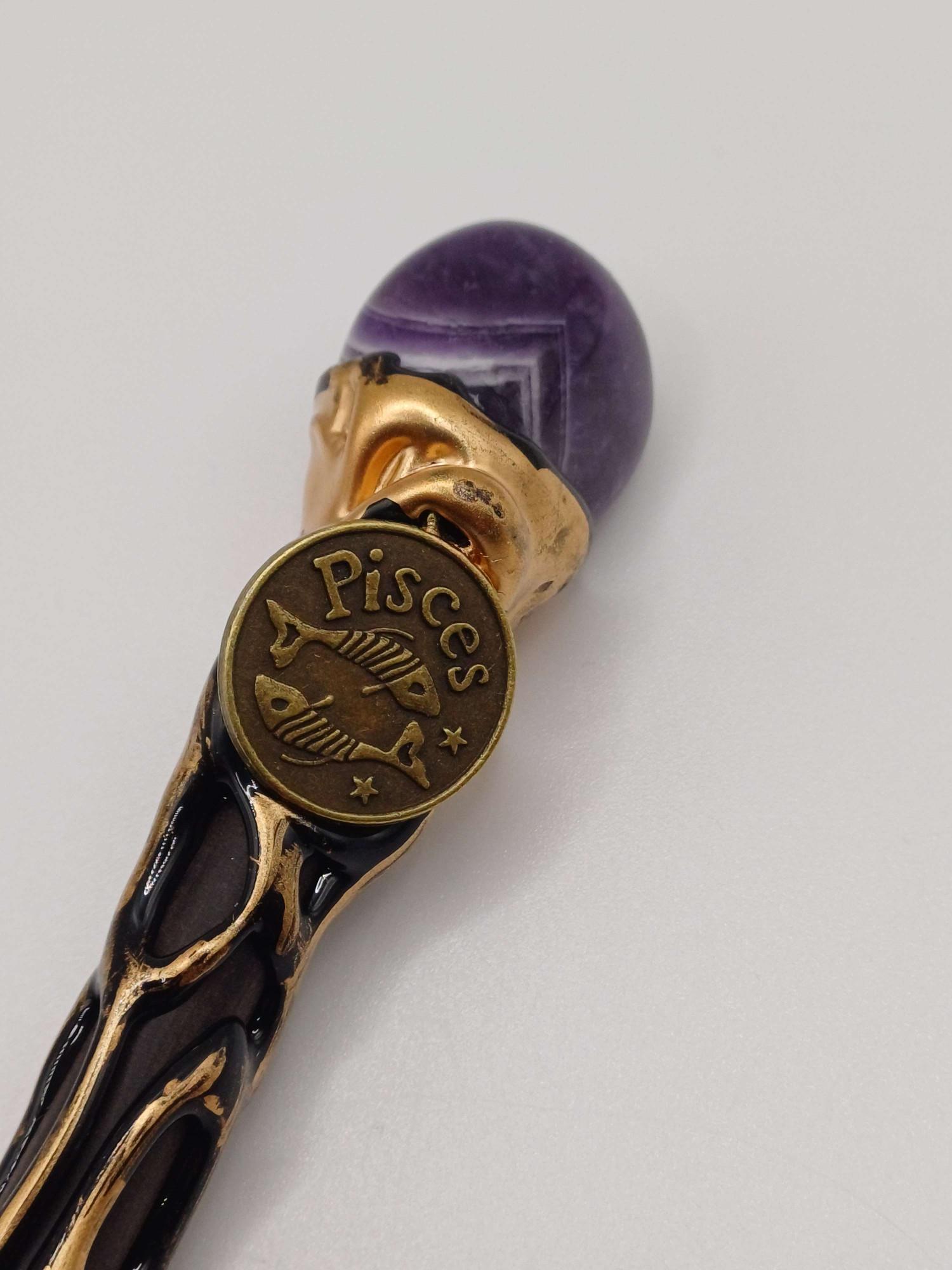 This amethyst Pisces star sign wand is the perfect mix of magic and meaning. It’s carved from real amethyst – the stone that’s all about calm, clarity, and spiritual connection – which happens to align beautifully with Pisces energy. The soft purples, natural marbling, and gentle shine make it both elegant and grounding.