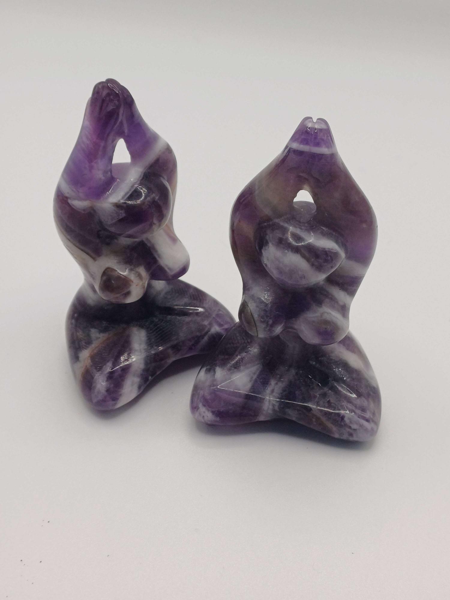 This carved amethyst yoga figurine has a quiet grace about it. Hand-shaped from real amethyst, each one shows off natural shades of purple that shift in the light – from soft lilac to deep violet. No two ever look the same, and that’s part of the charm. They’re polished smooth so they feel lovely in your hands, cool and grounding when you need a moment of stillness.