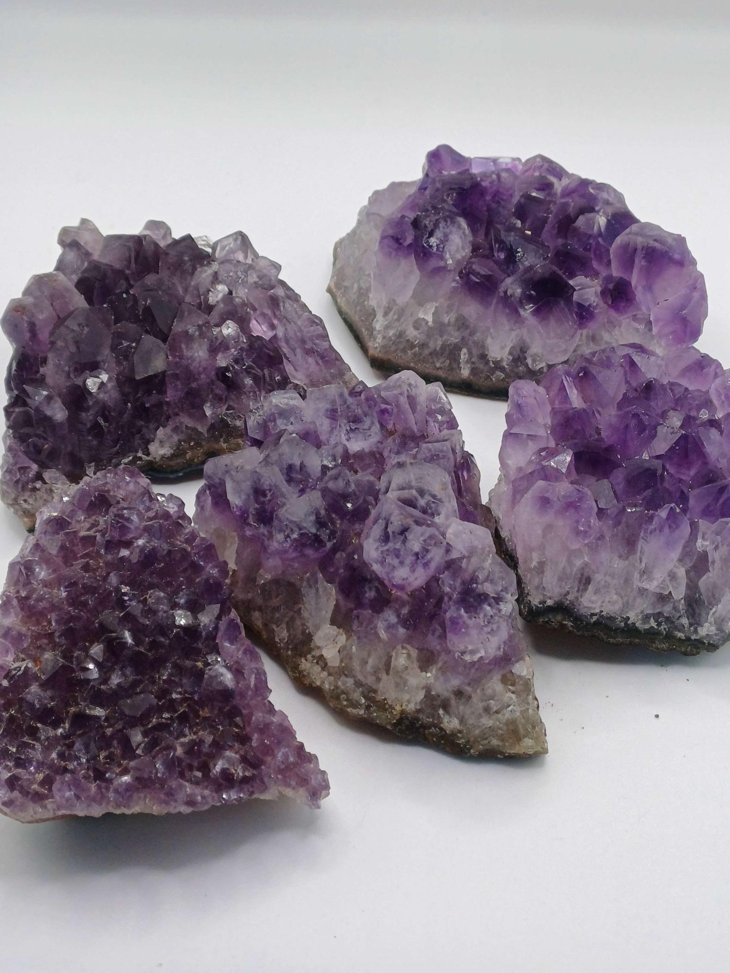 Every cluster is completely unique, shaped naturally over millions of years. Some are dense with tiny crystal points; others have larger, more dramatic formations that catch the light. That’s part of what makes them so special – you’ll never find another quite like yours. The lavender hue gives it a lighter, softer energy than deep purple amethyst, but it still carries that same peaceful, protective vibe.
