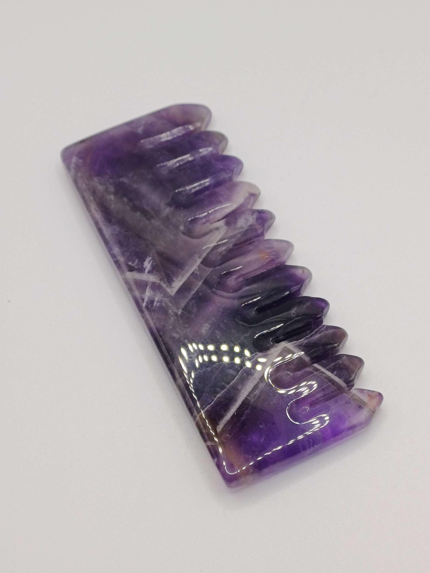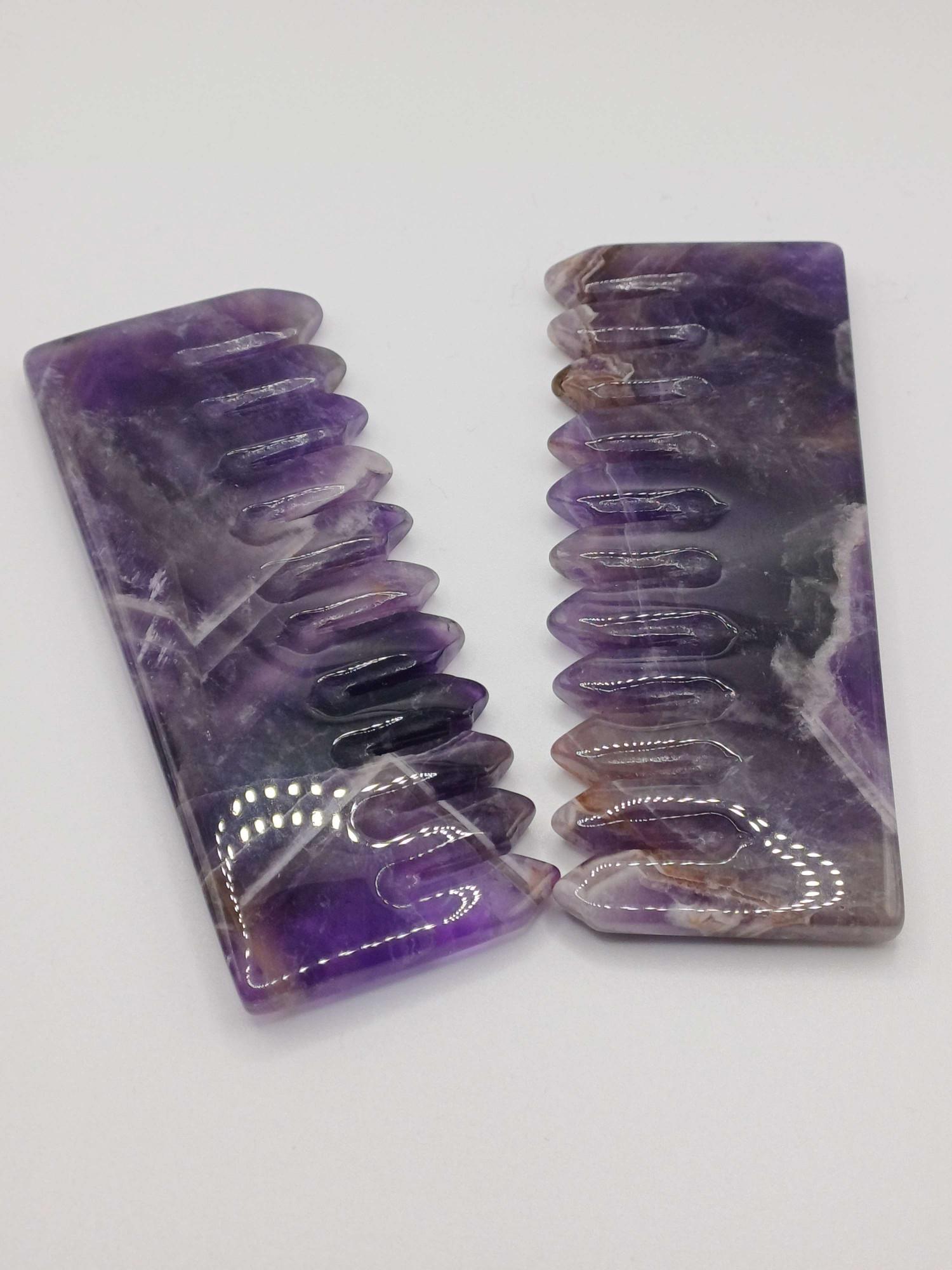 Because it’s made from genuine amethyst, no two combs will ever look exactly alike. Some will be lighter and airy, others richer and more dramatic in tone – all beautiful in their own way. It’s sturdy, smooth, and polished to perfection, with just enough weight to feel substantial in your hand.