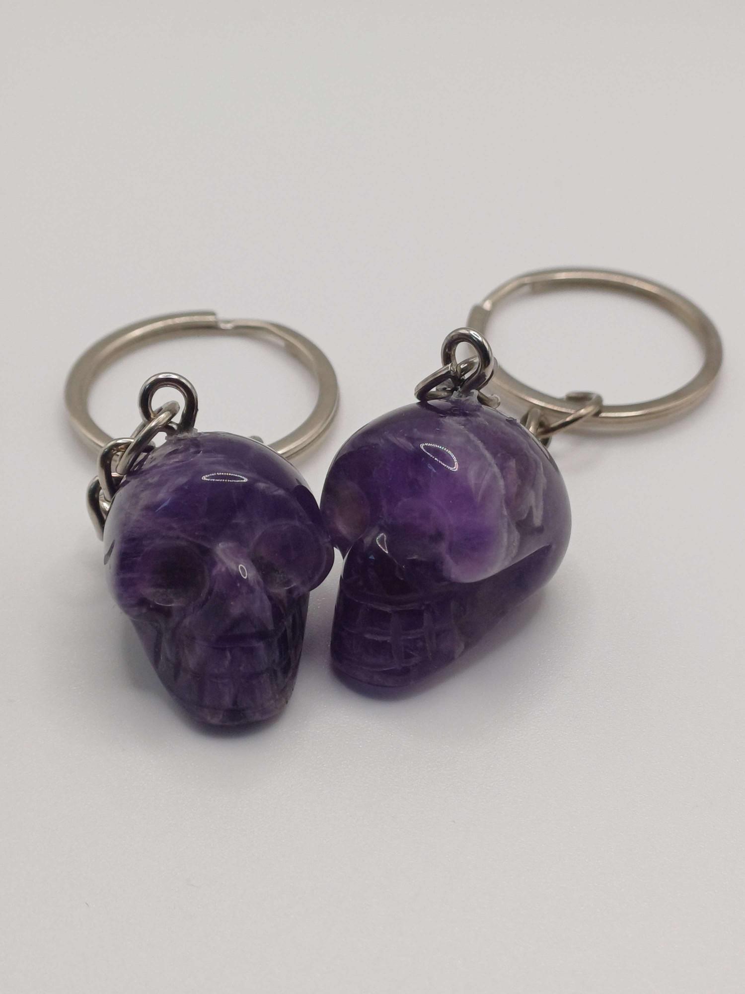 This polished amethyst skull keyring is a little bit of fun, a little bit of power, and a whole lot of crystal energy you can take anywhere. Each skull is hand-carved from real amethyst, then polished to a soft shine that brings out the natural violet and lilac tones of the stone. It’s attached securely to a sturdy silver-toned keyring, ready to clip onto your keys, bag, or backpack.
