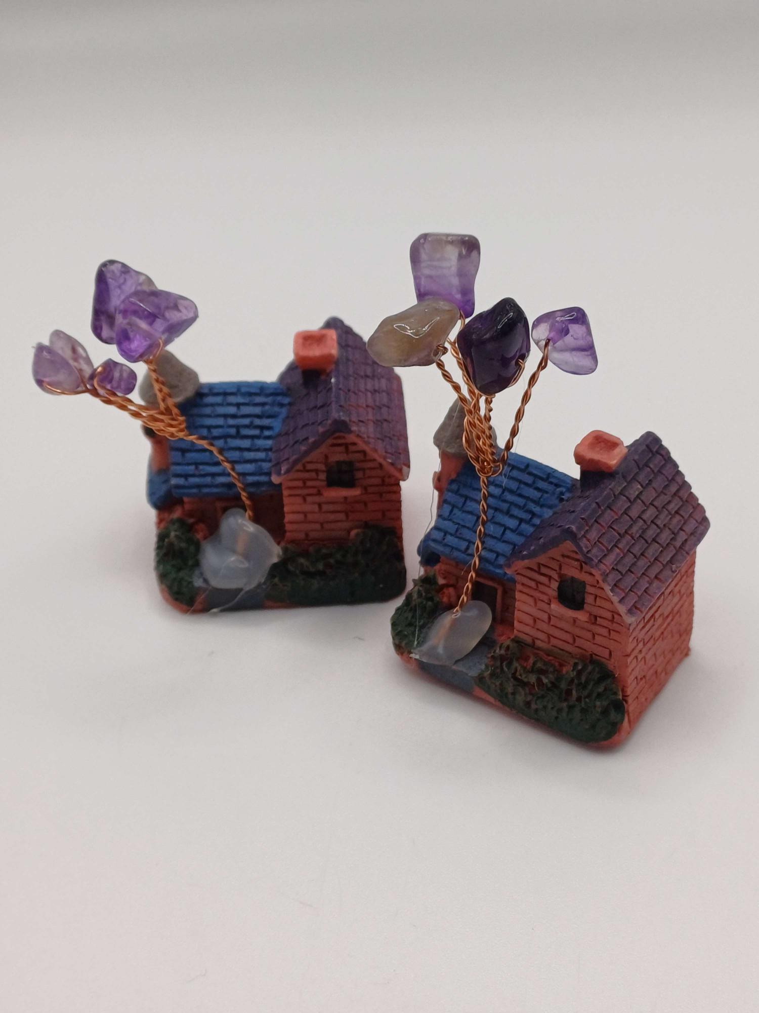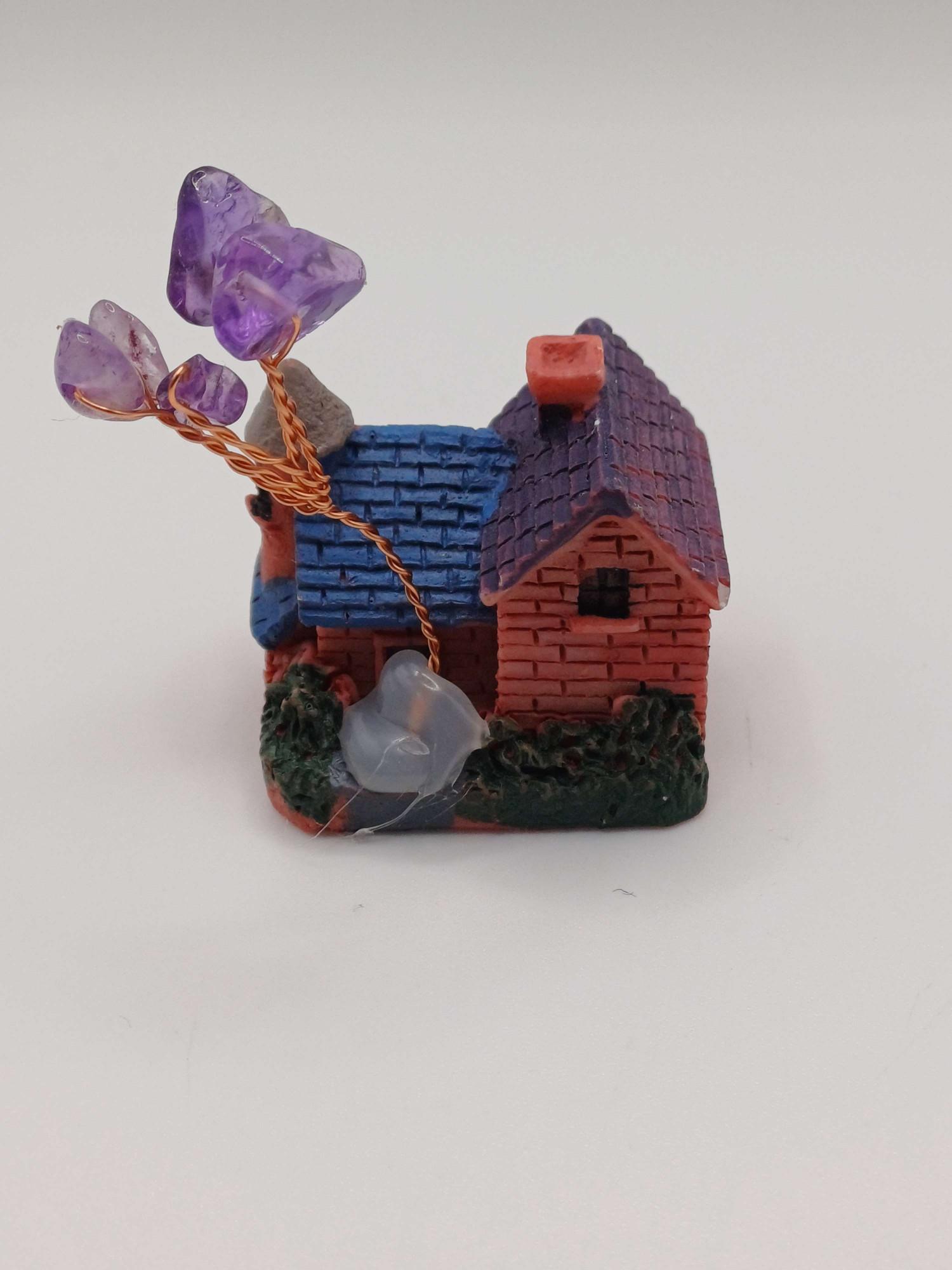 Small Cottage Ornament with Amethyst Crystal